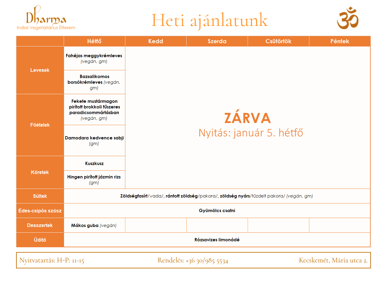 Éttermünk zavartalanul működik minden hétköznap 11:30 és 15:00 között!