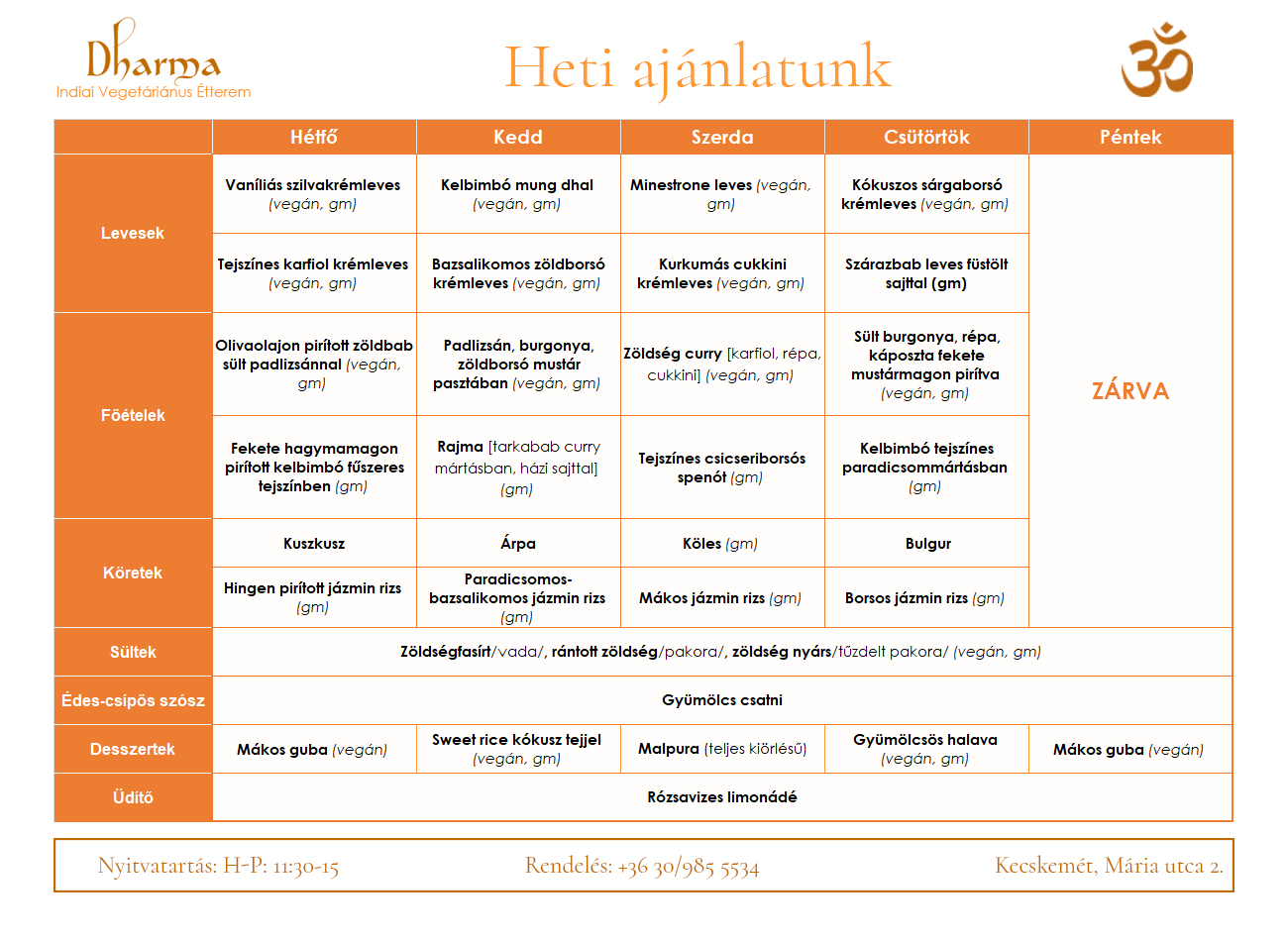 Éttermünk zavartalanul működik minden hétköznap 11:30 és 15:00 között!